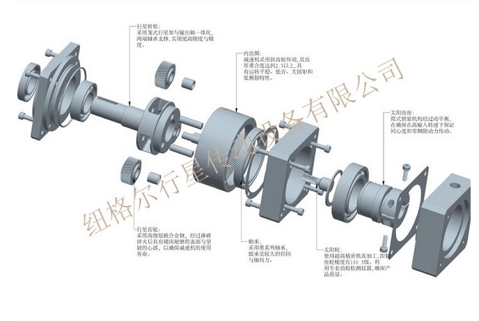 伺服行星減速機(jī)主要功能是轉(zhuǎn)動穩(wěn)、噪音低、剛性強(qiáng)、功力大特點。其零件一般是由行星轉(zhuǎn)架、行星齒輪、軸承、內(nèi)齒圈、太陽輪、太陽輪座、油封、法蘭、滾針軸、C型扣環(huán)、透氣塞等構(gòu)成。