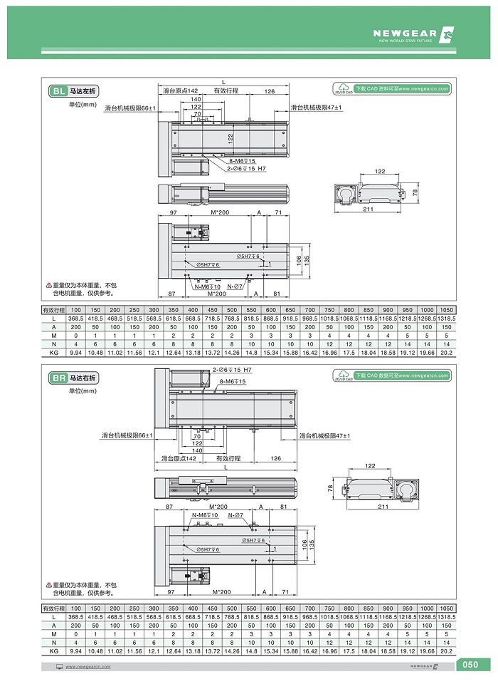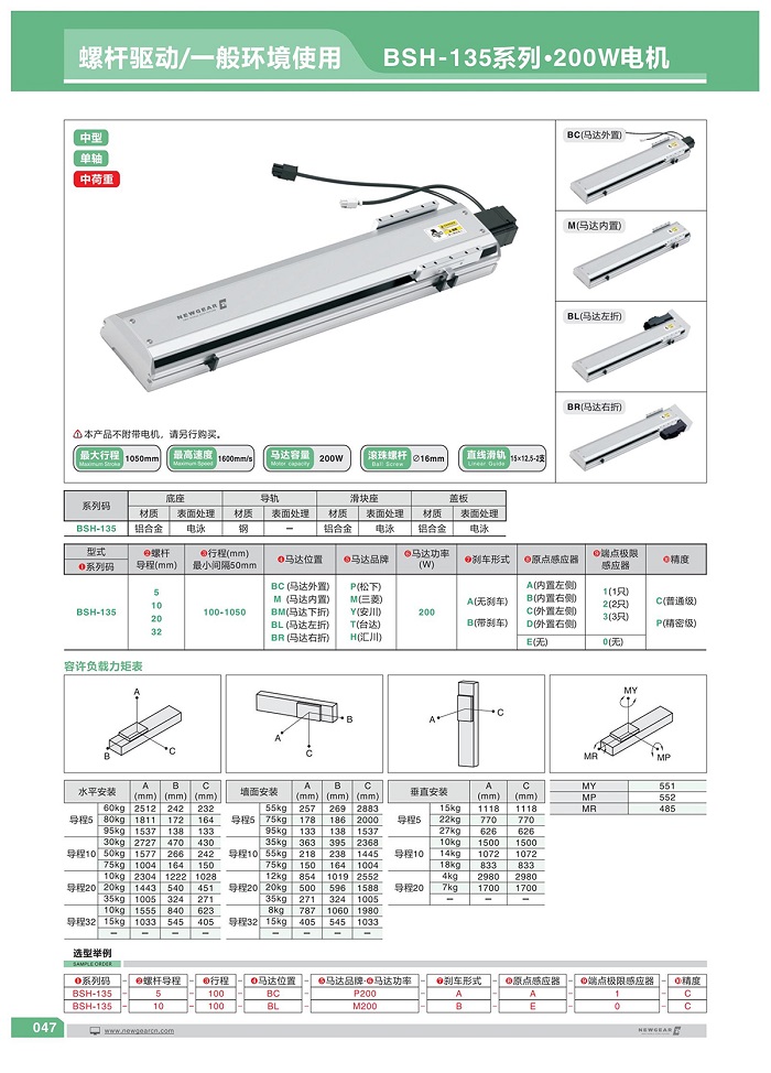 直線模組BSH-135系列·200W電機
